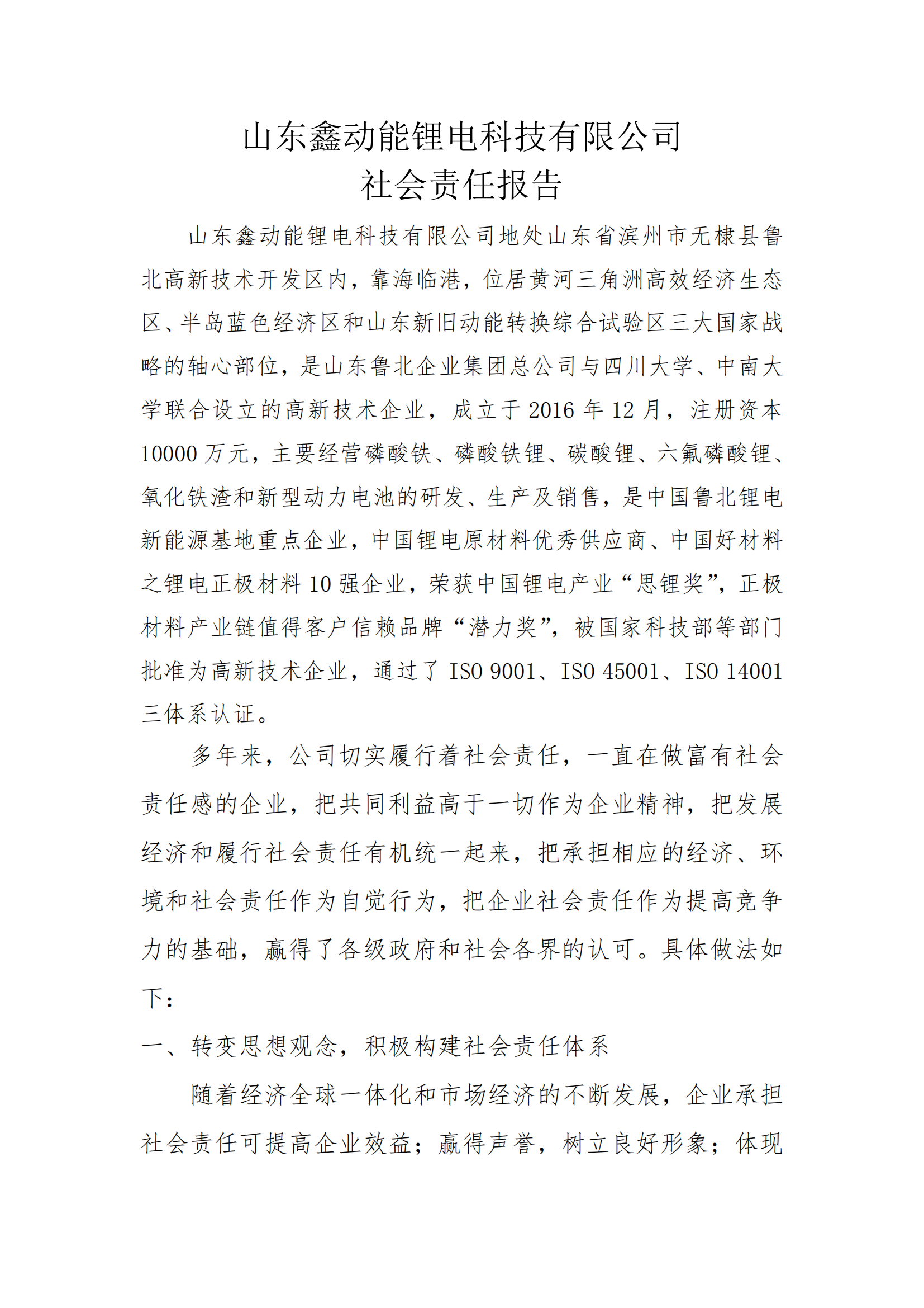 山東鑫動(dòng)能鋰電科技有限公司2020年度社會(huì)責(zé)任報(bào)告...