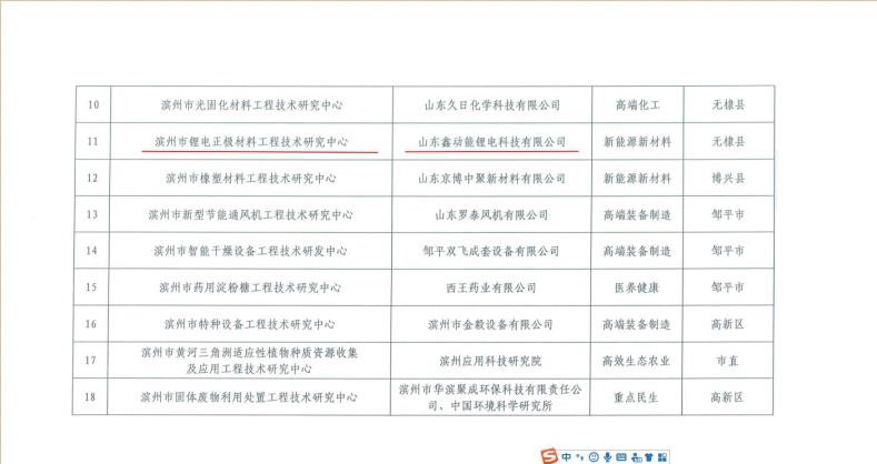 發(fā)平臺(tái)形式審查結(jié)果公示》,我公司科技系統(tǒng)市級(jí)研發(fā)平臺(tái)—濱州市鋰電正極材料工程技術(shù)研究中心